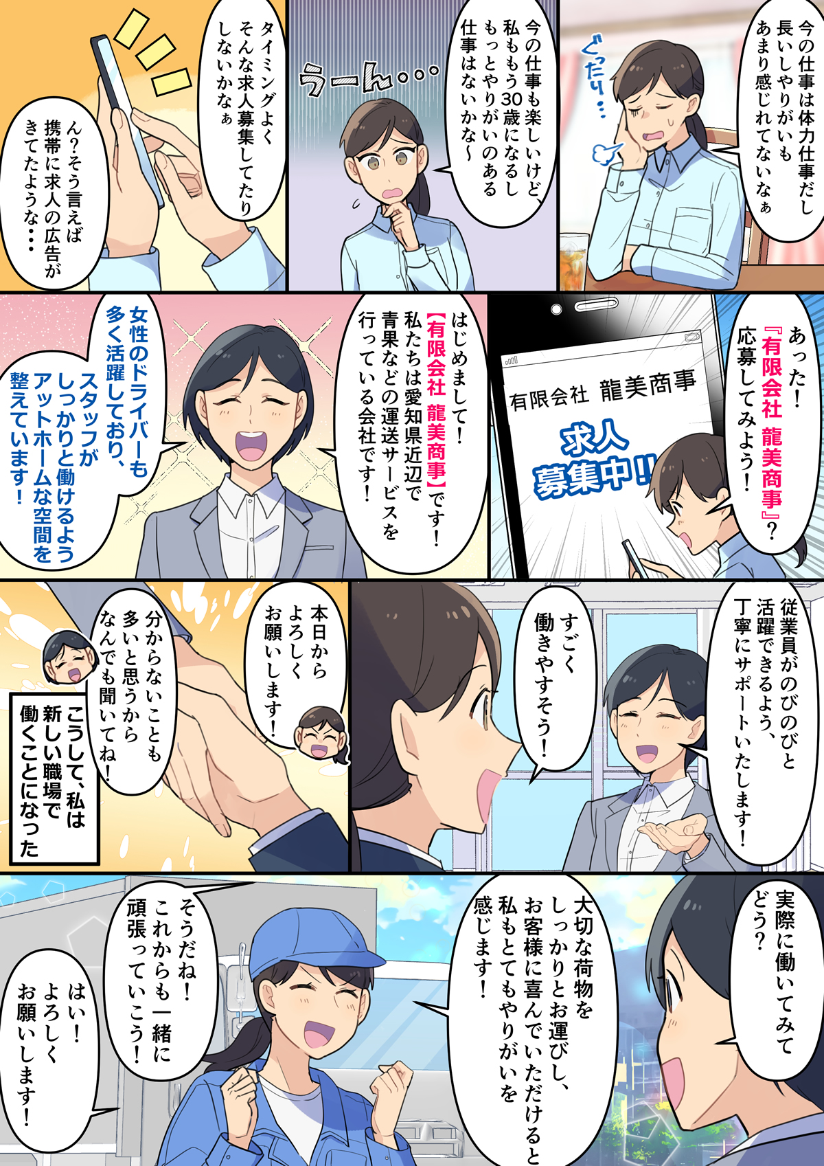 龍美商事は愛知県北名古屋市を拠点に青果物等の運送や袋詰め加工事業を行っている会社です。物流加工、輸送までを一貫して行う総合物流サービス企業です。